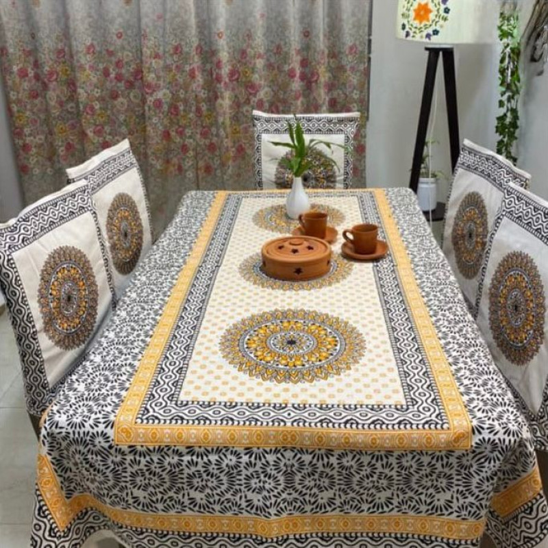 Yellow And Black Block Print Table Cloth